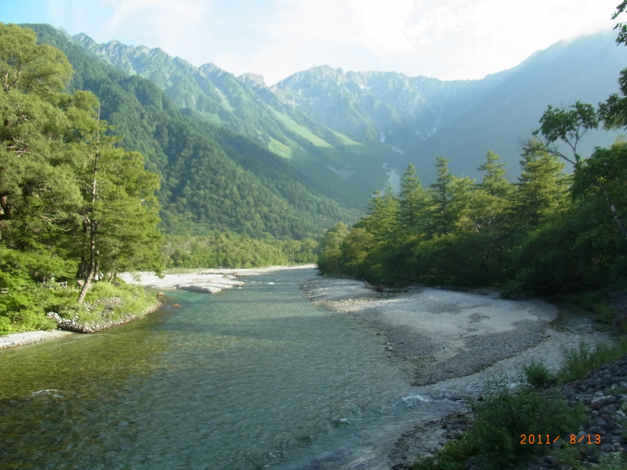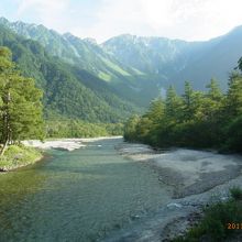 梓川の透明度と穂高岳の美しさ、澄み切った空気に心が洗われました。