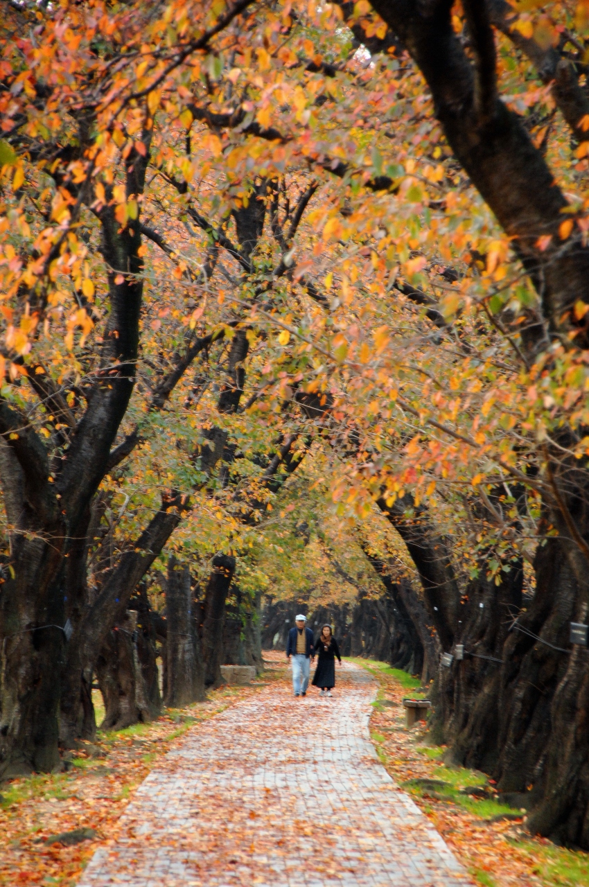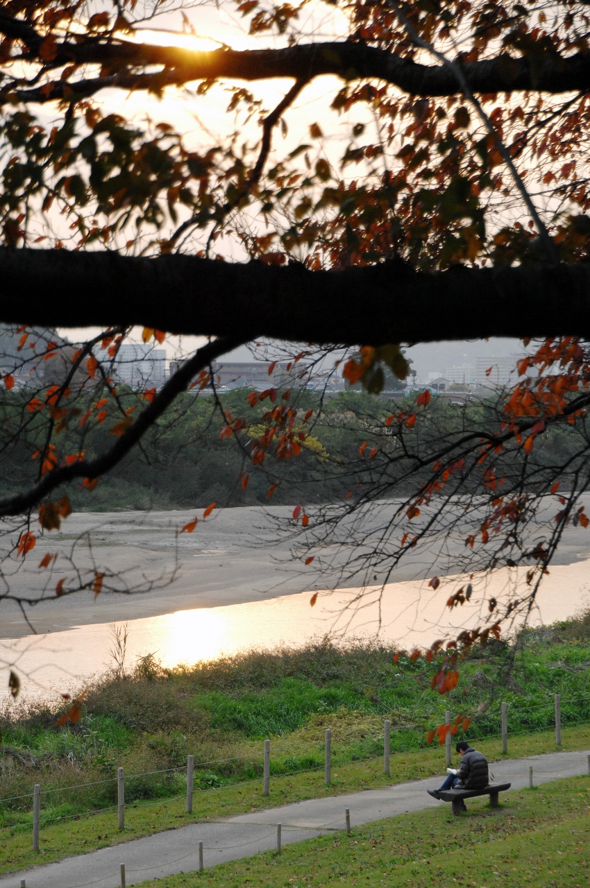 八幡の背割堤は、春の千本桜で有名ですが、秋の紅葉もおつなもの。