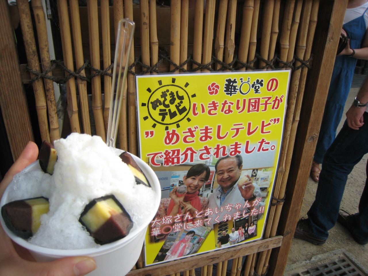 熊本駅からバスに乗り、熊本城へ行きました。中へ入ると、釘を一本も使っていない部分や金箔のふすまや天井等もあり見所たくさん。宇土櫓も入りました。休憩所でお抹茶をいただき、そこから離れた場所には土産物等が売られているお店があり、いきなり団子入りかき氷をペロリ!!
