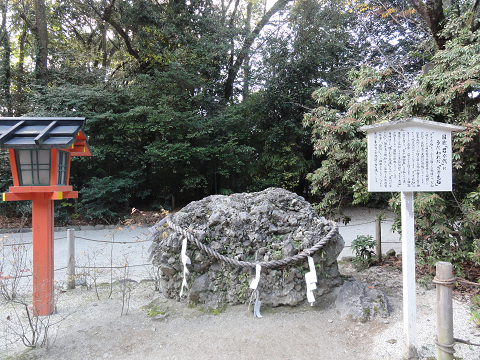 上賀茂神社には、国家の「君が代」に出てくる「さざれ石」がどんなものかわかる石がありました。小さな石が寄り集まって大きな石の塊になっているのですが、初めてみました。