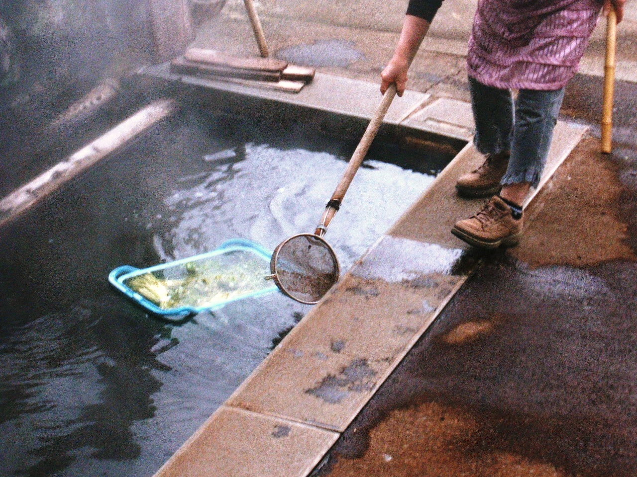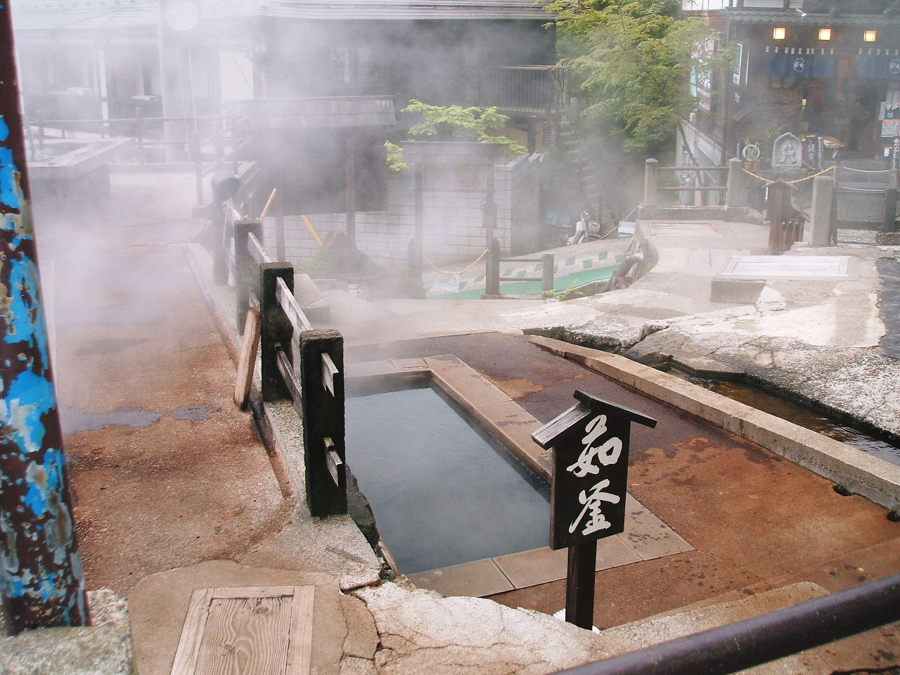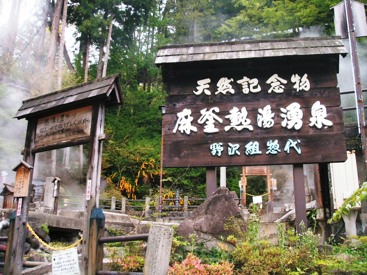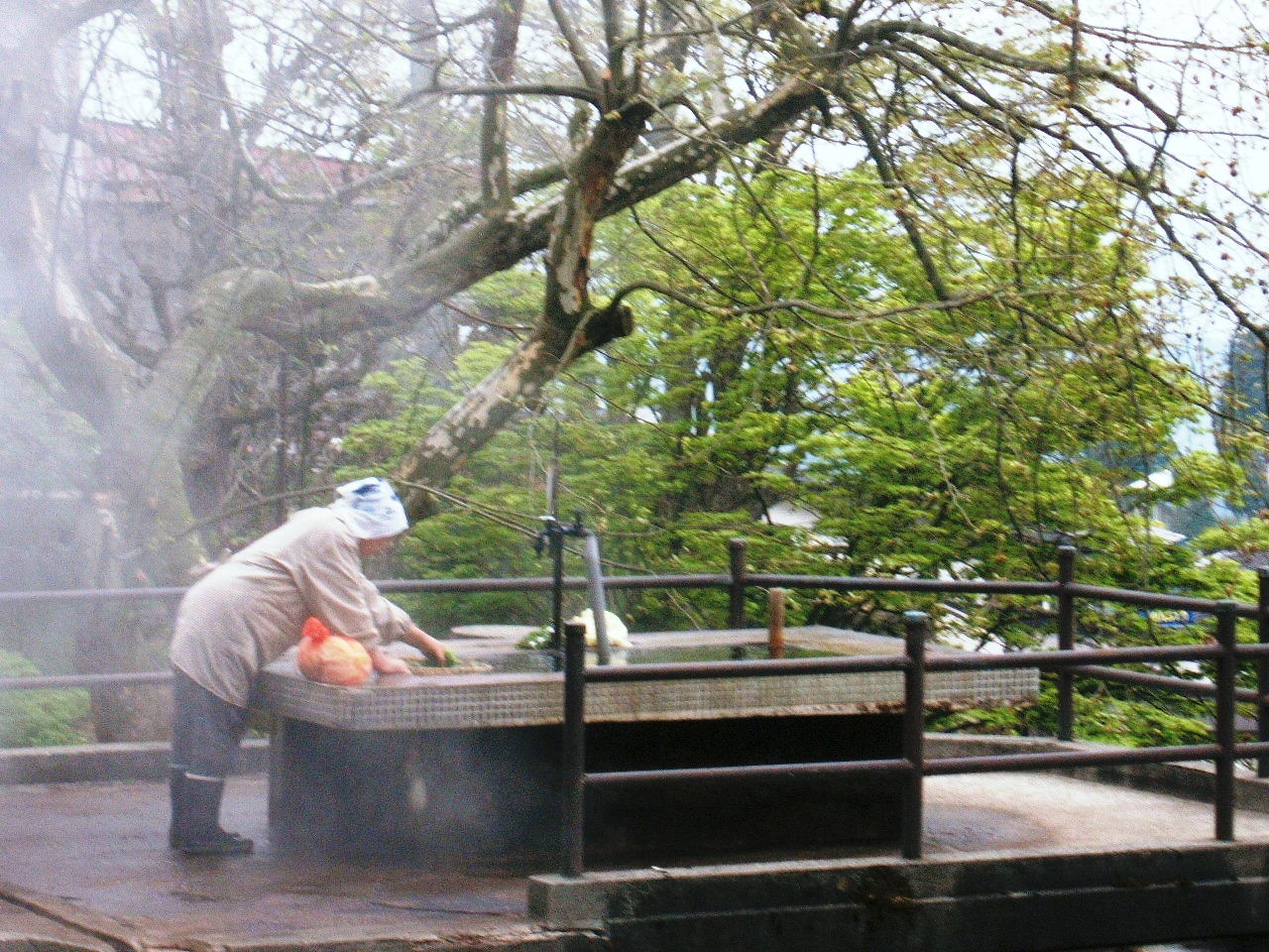 「天然記念物 麻釜熱湯湧泉」には、大釜、茹釜、円(丸)釜、竹伸釜、下釜の五つの釜があります。 ここでは、生卵を購入、自分でゆで卵(温泉卵)を、作ることも出来ますし、地元の人が麻釜で野菜をゆでている光景を見ることも出来ます。