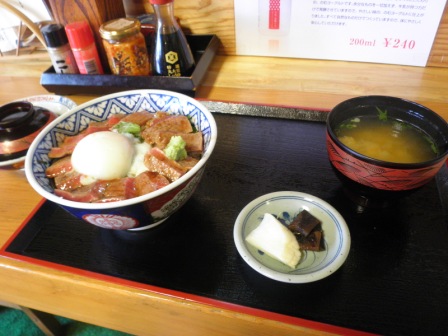 あか牛丼を食べに行きました。バスで行ったので(あまりそういう方は少ないかもしれませんが)、内牧バス停から徒歩すぐでした。