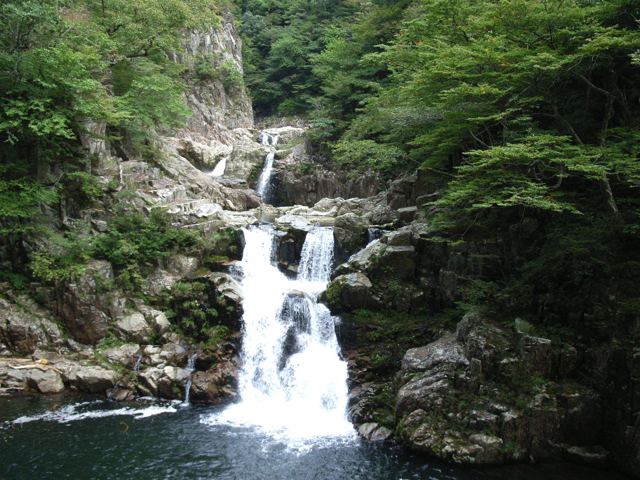 ここの見所は、2つの大きな滝と、猿飛という岸壁の切り立った渓谷です。