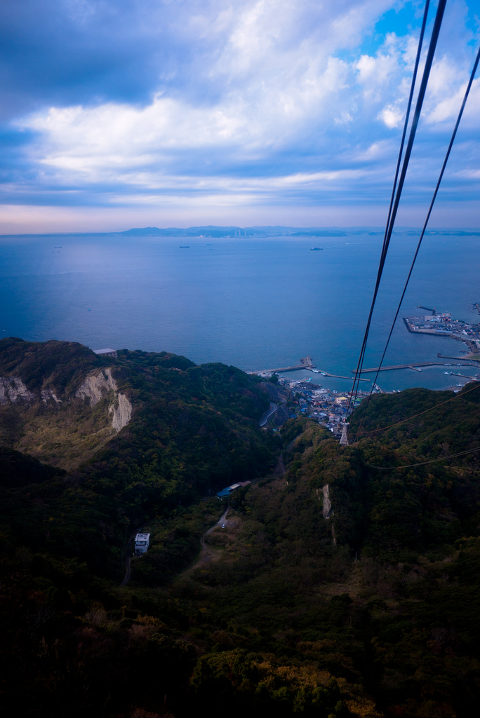 ロープーウェーに乗り込むことになったら、ぜひ海側の窓を確保してください。山側でも迫り来る鋸山の景色が見られていいのですが、やはりきれいなのは東京湾を望む方じゃないかと。浜金谷の港が一望できる景色はきれいです。