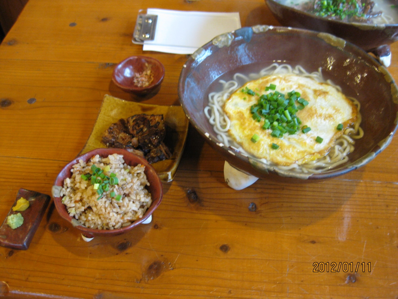 そばの上にたまごを置いたそばに調味料を自分の好みに合わせ混ぜると不思議な美味しいそばになります。今までで食べた沖縄そばでは個人的に大変気に入り最も感激しました。