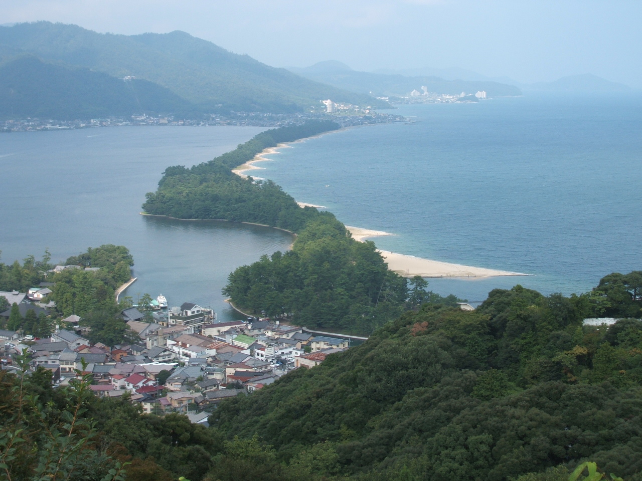 天橋立は丹後半島から宮津湾へと延びる砂州(砂嘴)で、その長さは3・6kmにもおよんでおり、今も延びているのだそうです。そして、そこには約5000本の松林が広がり、美しい光景を作り出しています。