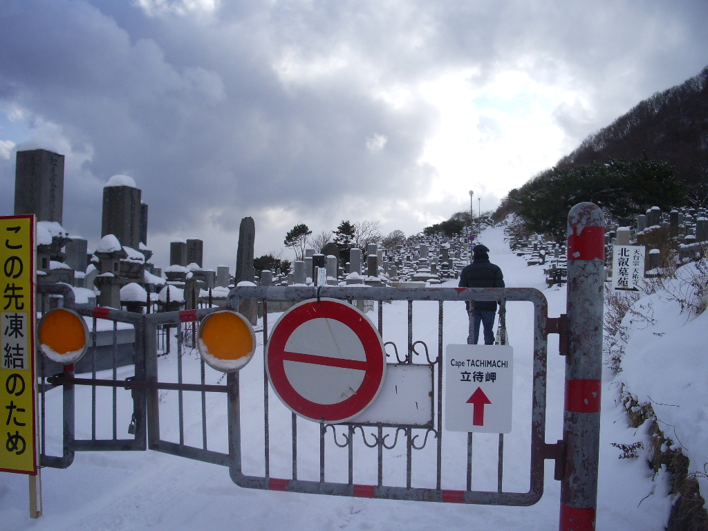 冬の間は車の通行は禁止ですが歩いて入るのは構いません。石川啄木一族の墓地は通路に面してあり、標識も充分に示されていますので迷いません。そのまま真っ直ぐ歩くと立待岬につながります。歩いて10分~15分程です。与謝野晶子の碑も建っています。啄木を支援したそうです。