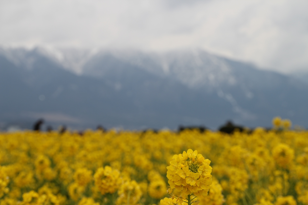 私の場合行いが悪いのか・・・ですが、今の時期、天候が良ければ、雪の頂きを得た比良山系を望む菜の花畑は、十分に満足できるものです。