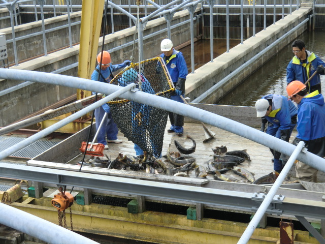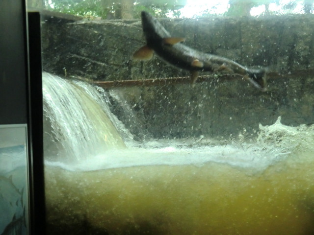ちょうど鮭の遡上シーズンで施設の内外で懸命に遡上する鮭を間近に見ることができました。