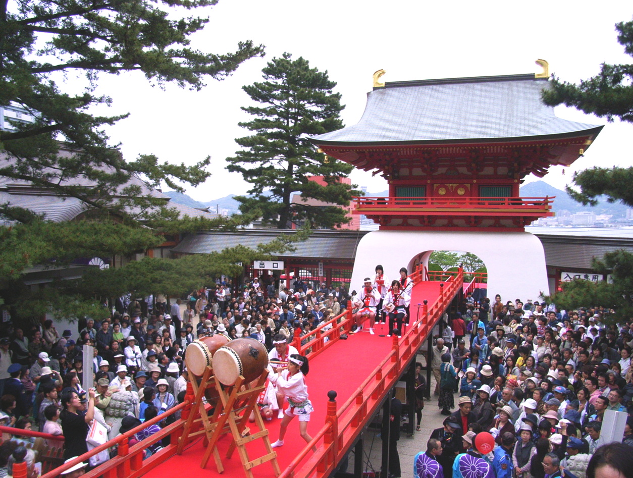 下関赤間神宮では毎年5月に、壇ノ浦で亡くなった安徳天皇を祭る先帝祭が行われます。