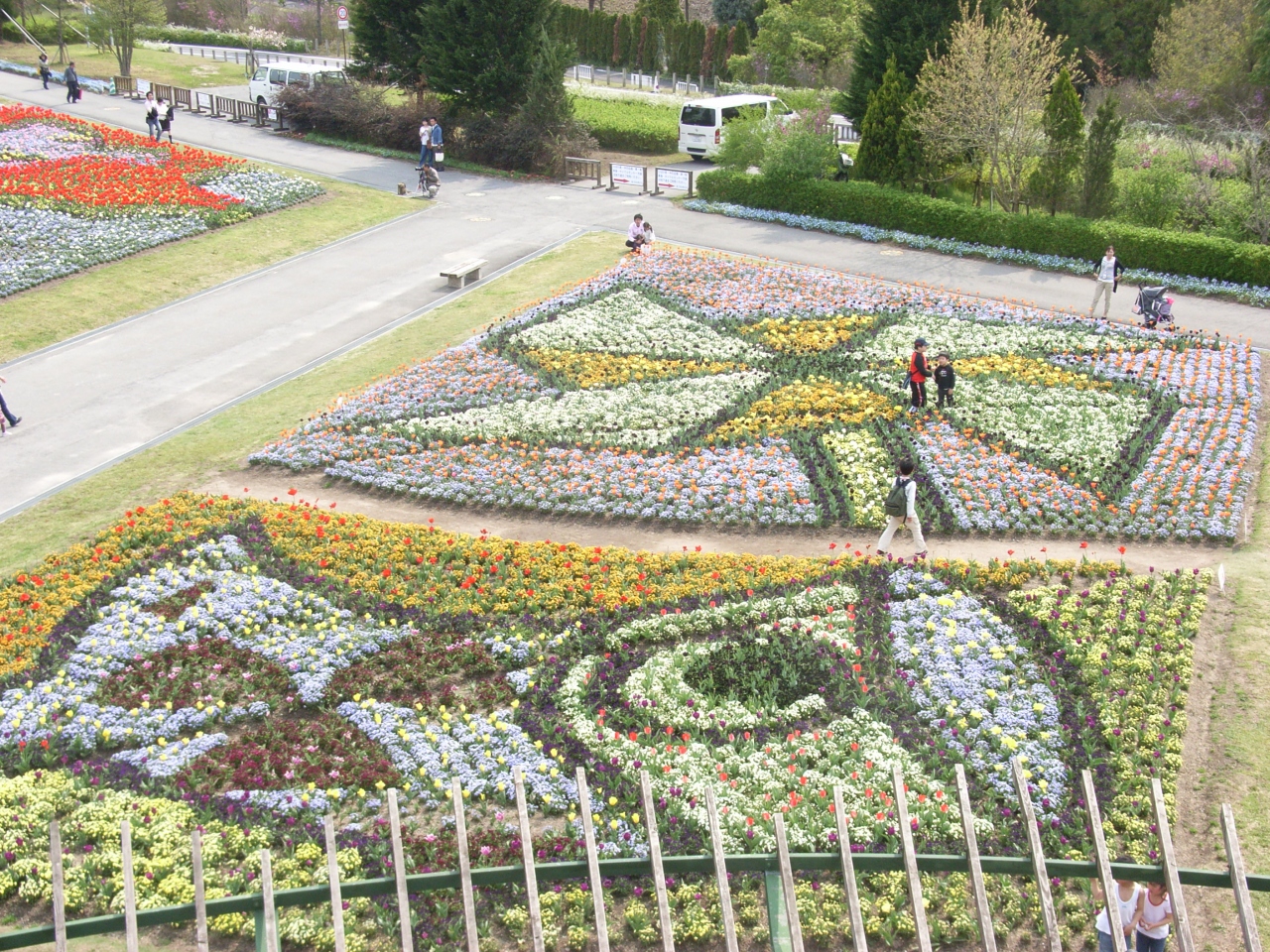 近くで見ると花だけですが、展望台に上がると様々な模様に描かれているのが分かります。