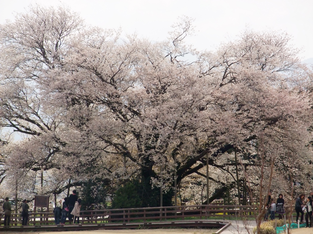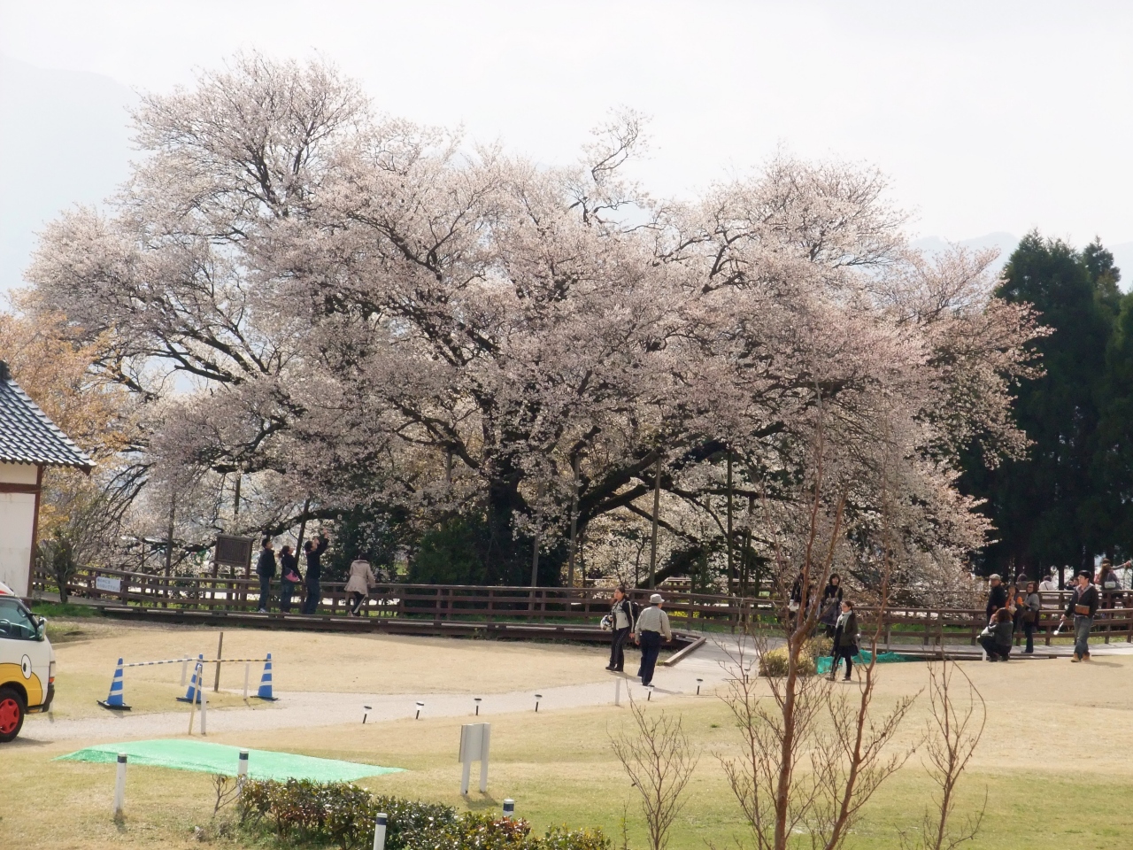 一心行桜は、樹齢400年、幹周り約7・35m、高さ14mのヤマザクラで、枝張りは東西32・3m、南北26.0mの巨木です。