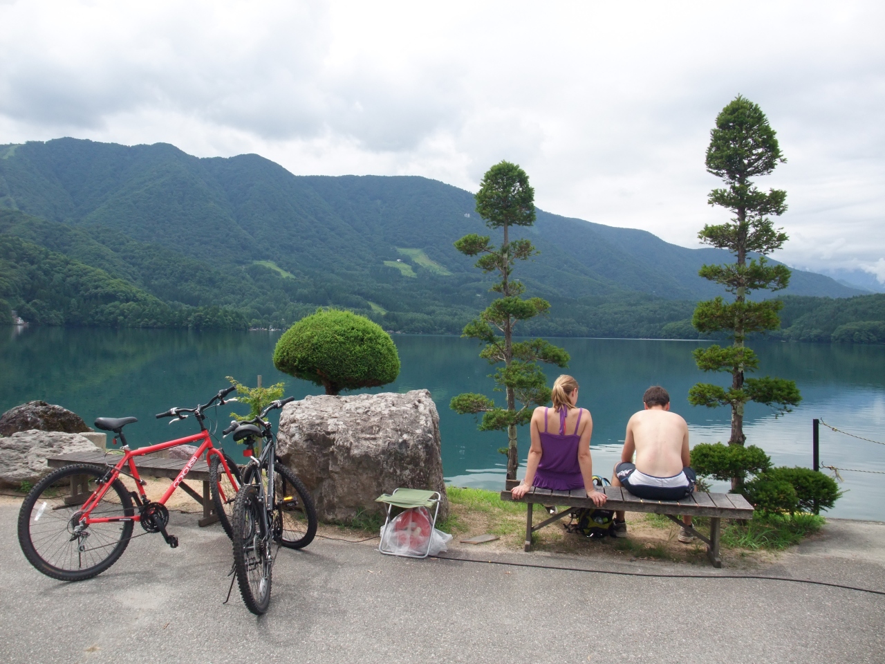 私達の訪れた日の青木湖は、上天気とまでは言えませんでしたが、それでも青く美しく、山々を映し出しており、私達を十分に満足させてくれました。