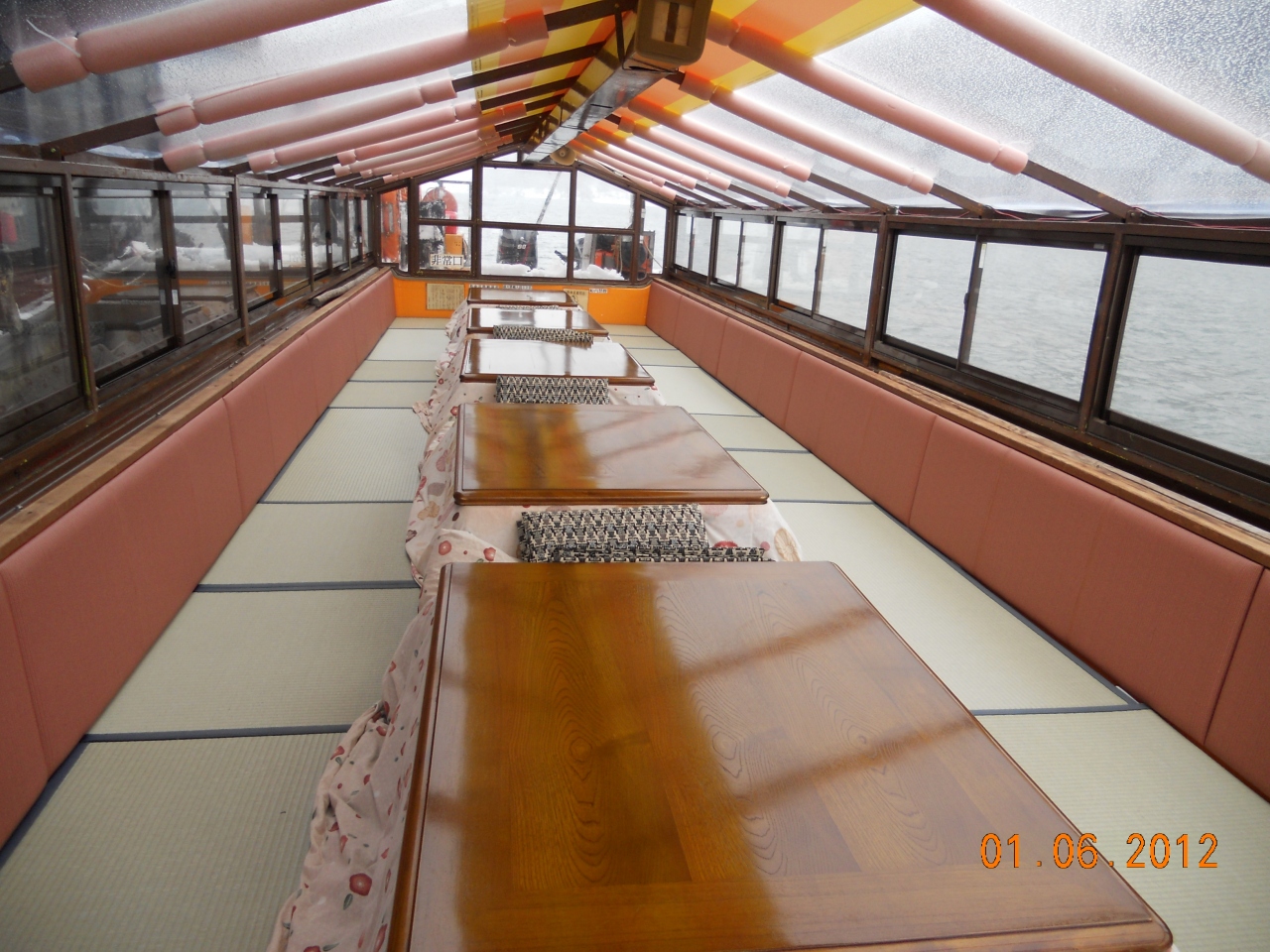 震災から1年経ってなかったこともあり、とても空いていて、平日ということもあり、お客さんは私1人のみで貸切状態。 冬は、全便こたつ船ですので、寒さの心配はありません。
