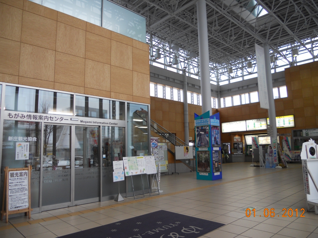 電車の出発もそこまで頻繁にあるわけではないので、どうやって時間を潰そうかな~と思っていたのですが、とってもキレイでモダンな駅舎に、待合室もあり、コンビニや観光案内センター、東北のお土産が色々と揃う、もがみ物産館、レストランやカフェが数軒など思ったよりも退屈せず時間を過ごせました。