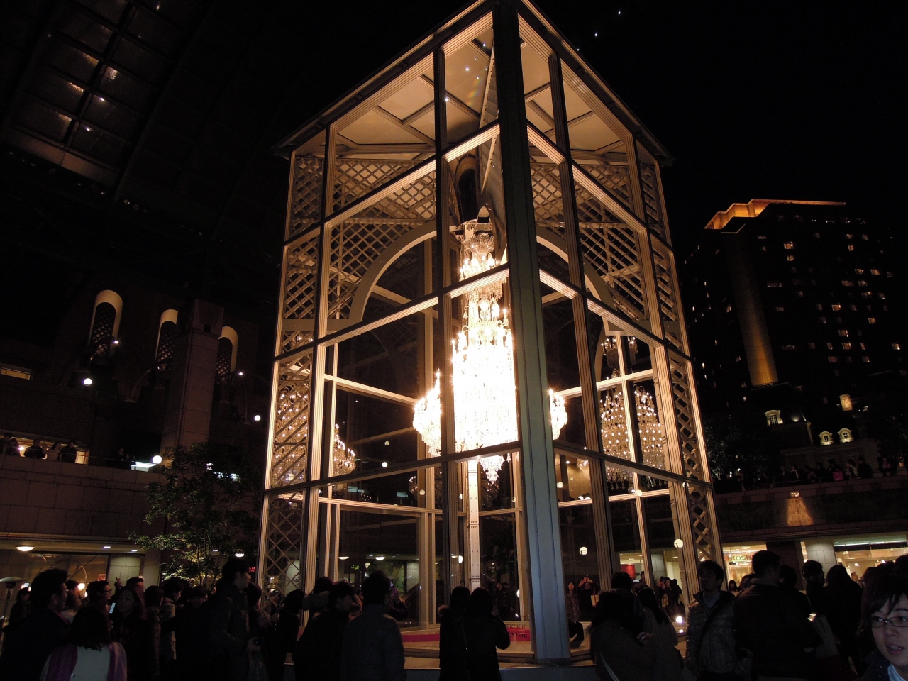 シャンデリアのイルミネーションは、寒い中でも座って見ていたいほど、