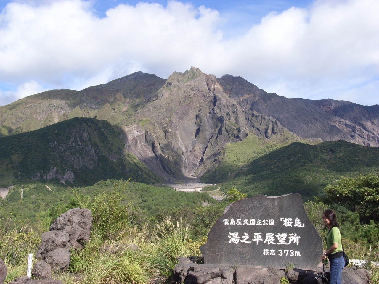 桜島の中腹にある展望台ですが、桜島(山)に一番近づける場所で標高を示す掲示があります。