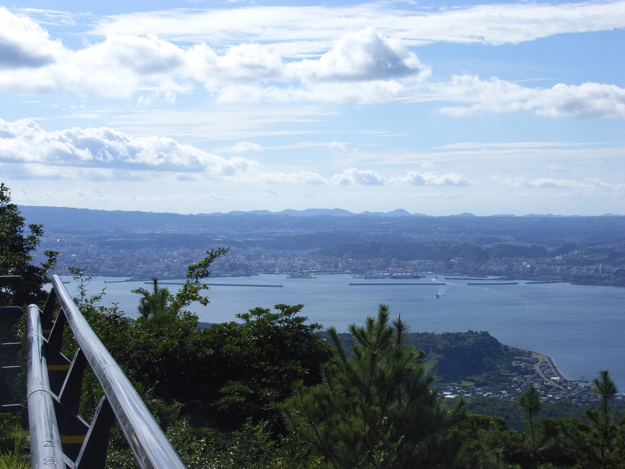また、ここからは鹿児島の町も対岸に見ることができ、反対側には遠く開聞岳まで望見することができます。