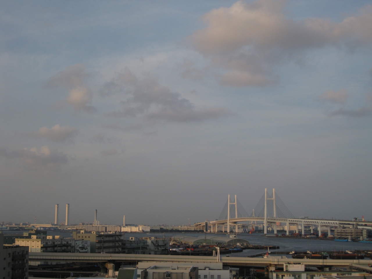 横浜港とベイブリッジが見渡せます。