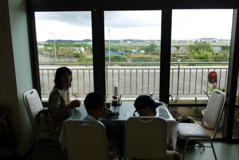 窓側の席からは嘉手納空港で飛行訓練をする米軍機の離着陸が眺められて、見ているだけであきません。