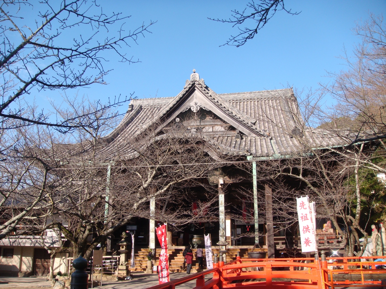 上がりきると正面に六角堂、右手に2002年建立の新仏殿、左手には本堂、鐘楼、大師堂などが建っています。