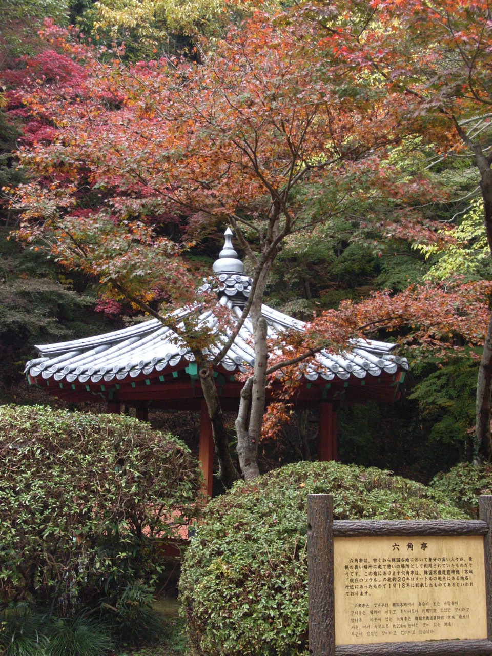 その中でも特に六角形をした小さなお堂、六角堂の付近の紅葉が見事で、ここの写真は錦帯橋と共に岩国を代表する景観となっています。