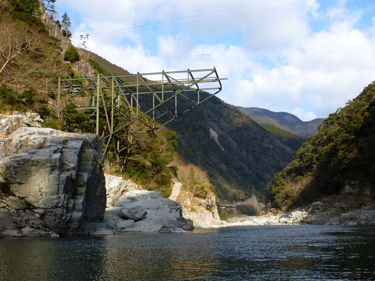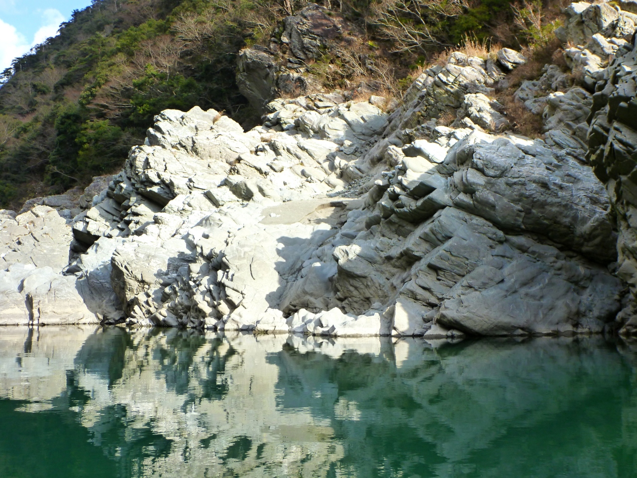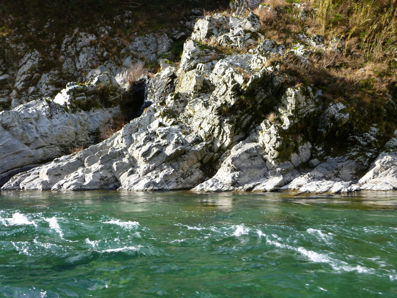 2月の非常に寒い時期でしたが、天気が良かったので、大歩危観光の遊覧船に乗ってみることにしました。夏は涼しげですが、冬の大歩危渓谷の雪が残った写真を見て、一度は行ってみたいと思っていました。残念ながら(幸いにも?)、前数日間の天気が良かったということで、雪はほとんど残っておりませんでした。