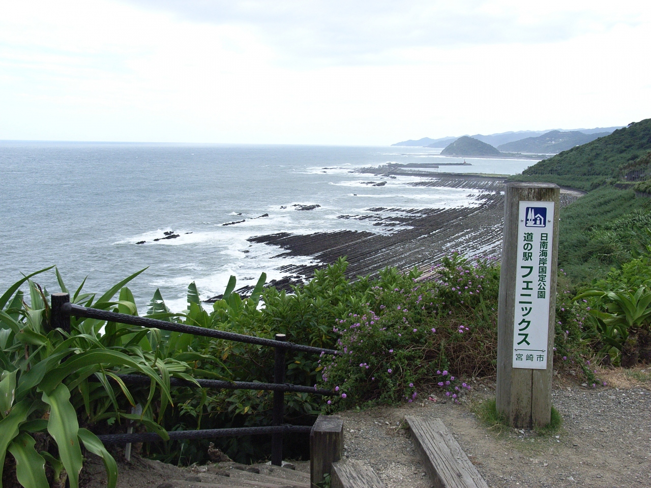 フェニックスロードに面しており、海には鬼の洗濯板が見え、付近には椰子の木が生える等、南国感いっぱいの道の駅です。