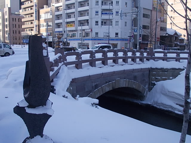 札幌中心部を東西に分かつ創成川通りは、数年前にアンダーパス化工事が完了して、現在はその地上部分が公園として整備されていますが、その中心部、テレビ塔の南東側にこの歴史遺産がひっそりと佇んでいます。ここがまさに北海道の道路の起点となった場所であり、今では日本橋の札幌版(?)、創成橋が、当時の風情に限りなく忠実に再現されていますので、是非北海道の開拓の歴史を偲ぶ意味でも訪れてみてください。