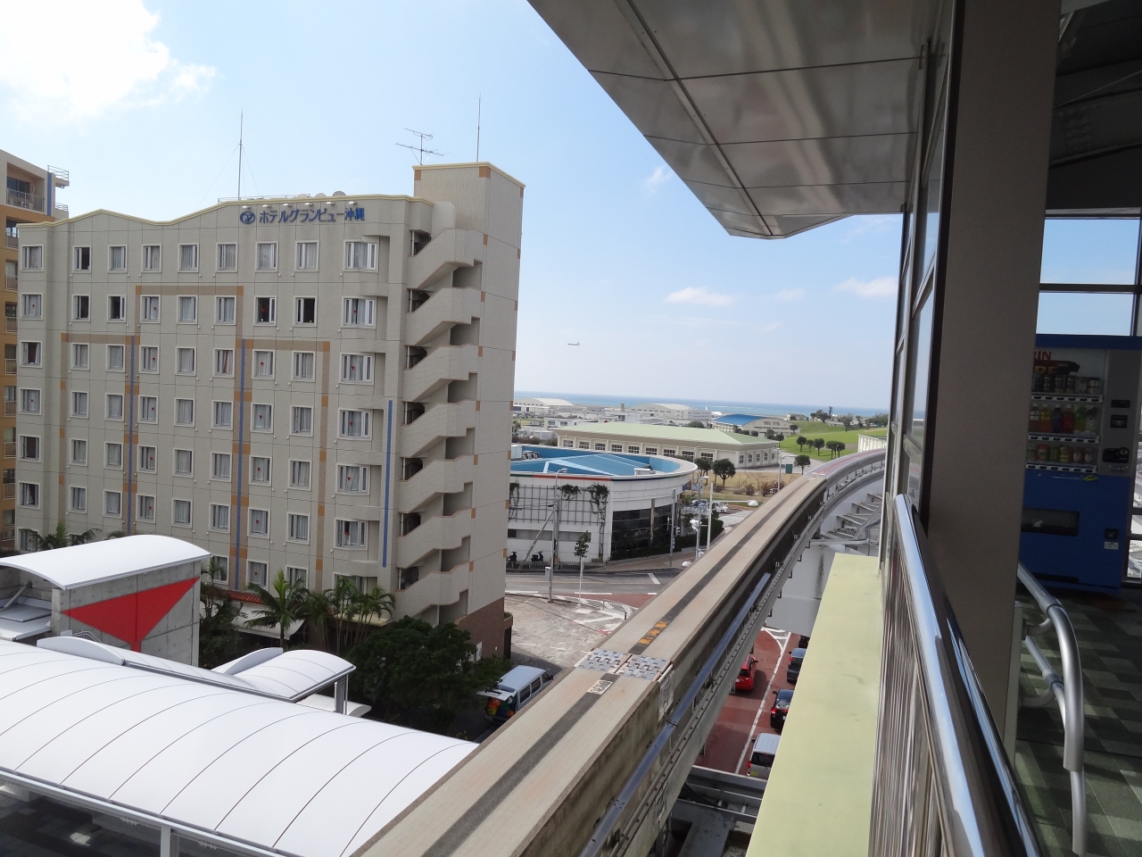 今回一度沖縄唯一のモノレールにのってみたくて、最短で体験できる空港~赤嶺まで利用してみました。出張人や観光客が沢山でした。車窓からは、飛行機の離陸、クリアブルーの海が一瞬見えてさすが沖縄!と感動しました。
