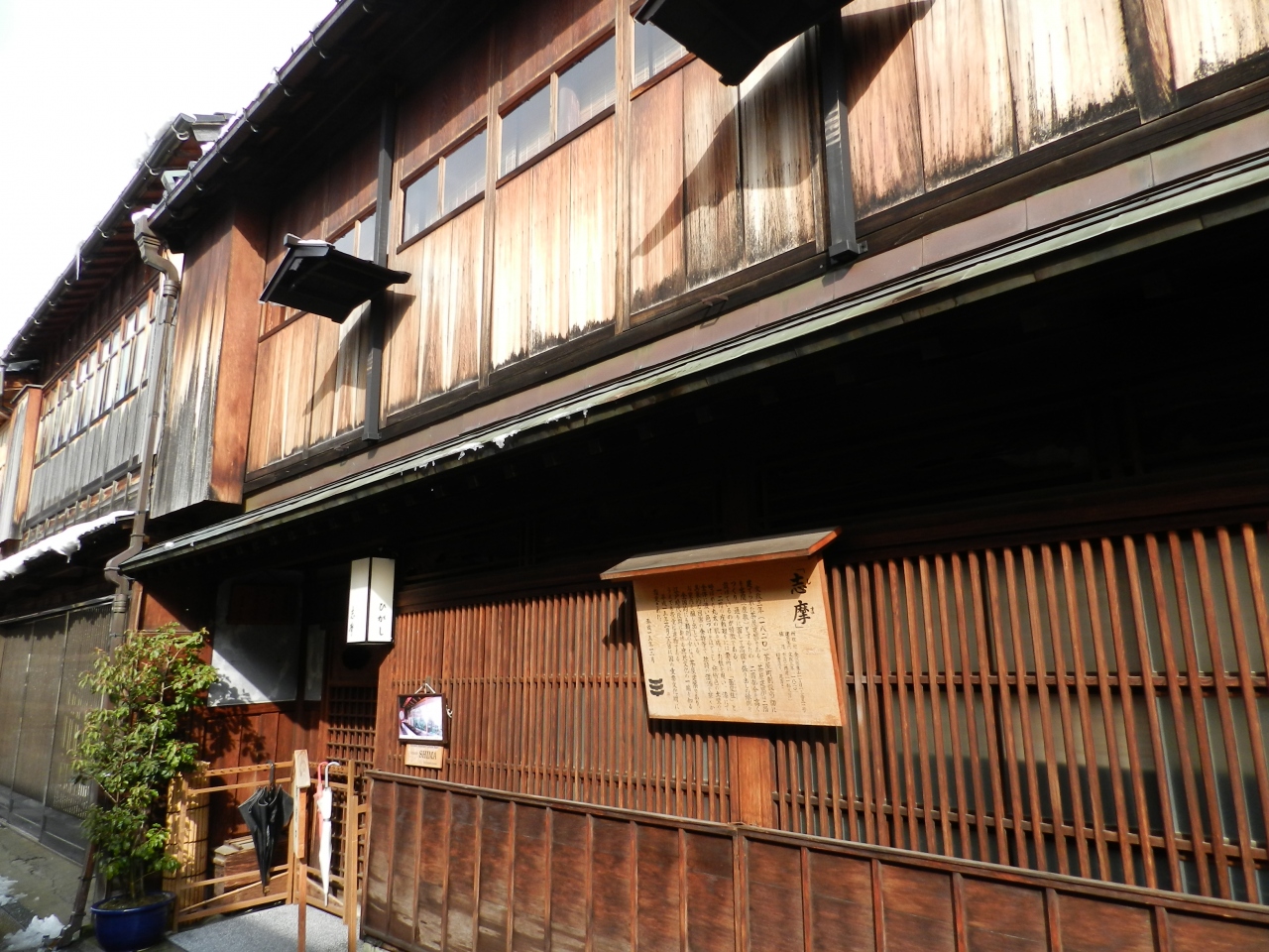 江戸時代そのままのお茶屋さんを見学できる建物や、カフェ、民芸品店などもあり、金沢を代表する観光地でもあります。