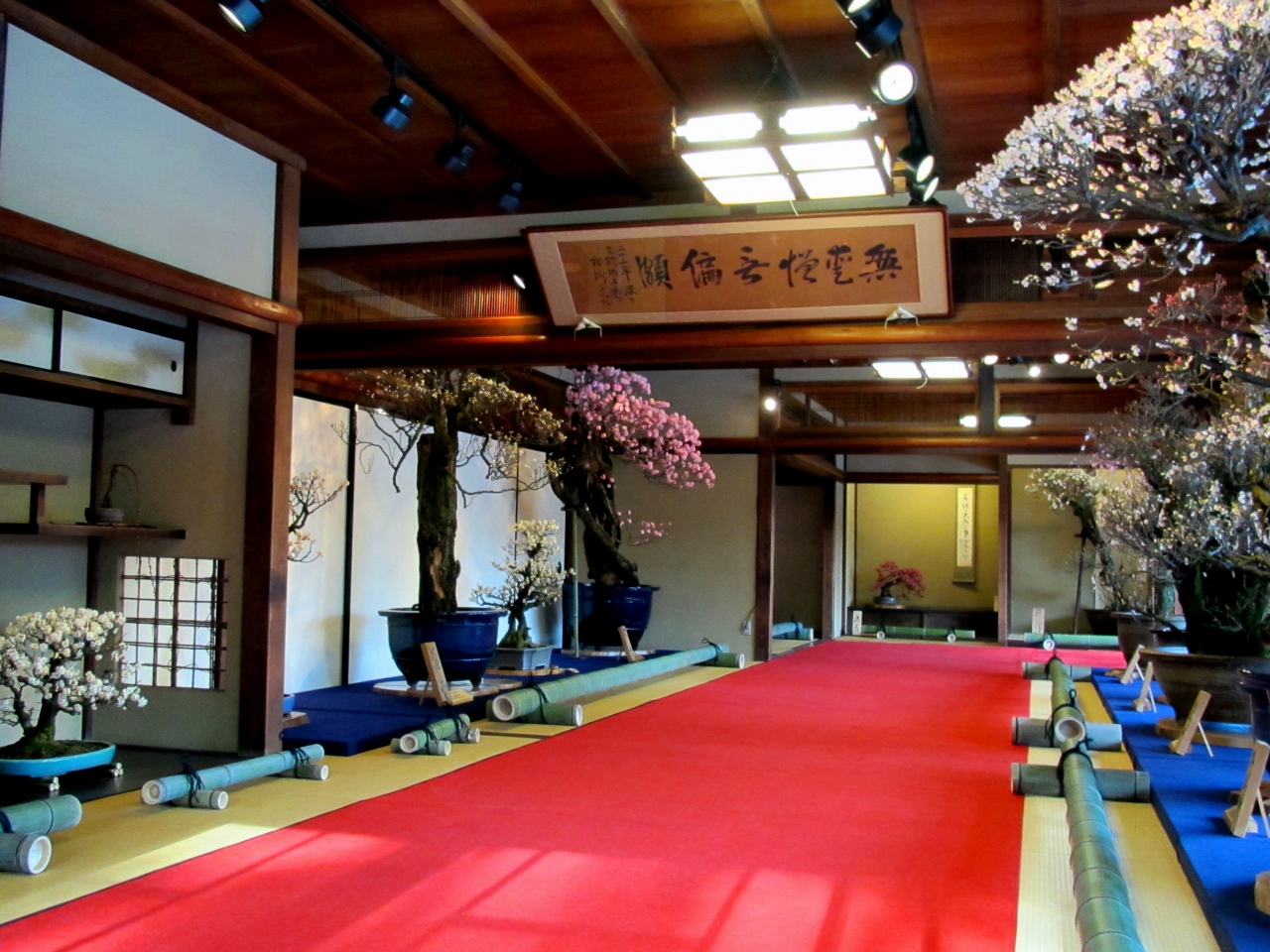 1887(明治20)年に明治天皇行在所として実業家の浅見又蔵により建設された迎賓館で、1月下旬から3月上旬には長浜盆梅展の会場となります。迎賓館に相応しい立派な館内もいいですが、池泉回遊式庭園も心和みます。