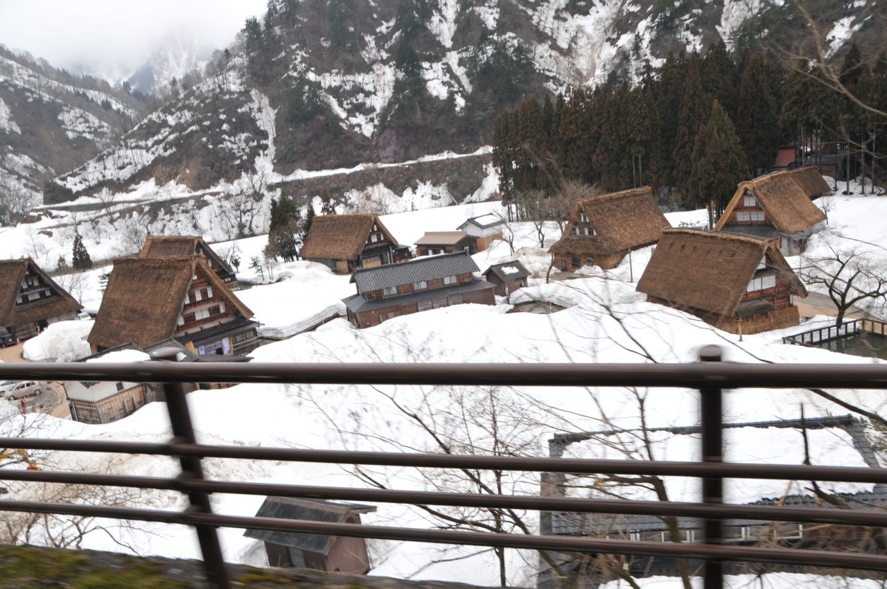 城端方面からバスに乗ると、白川郷の手前にあるのがこの菅沼集落です。バス通りから見えるので、バス停を降りてから迷うことは無いでしょう。集落には現在12棟の家屋があり、そのうち9棟が合掌造りです。川と山に囲まれたこじんまりとした集落ですが、見ごたえはありますよ。
