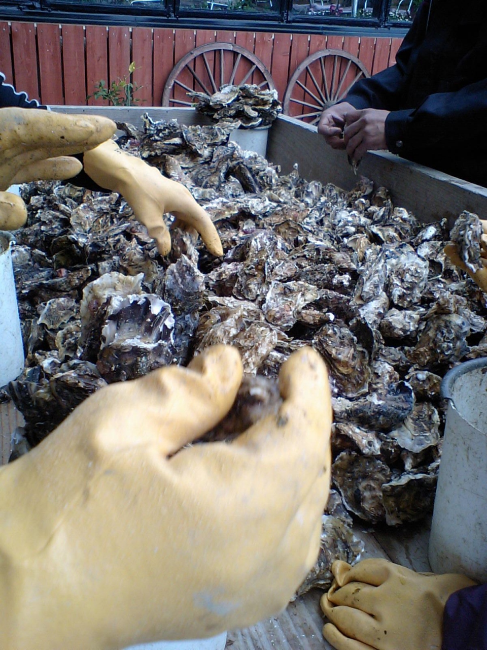 平べったい牡蠣を立てて広げていきました。