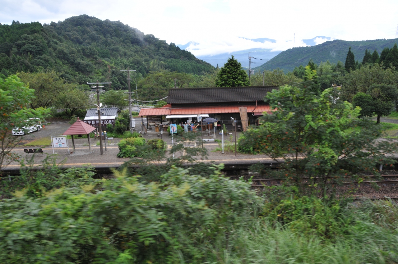 人吉から乗ると終点吉松の一つ手前の小駅です。この駅もスイッチバック駅で、眼下に真幸駅を見下ろしながら一旦駅を通り過ぎ、バックしながら駅に進入します。駅舎は古く、ノスタルジックなムードです。この駅で5分ほど停車しますので記念撮影が可能です。