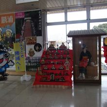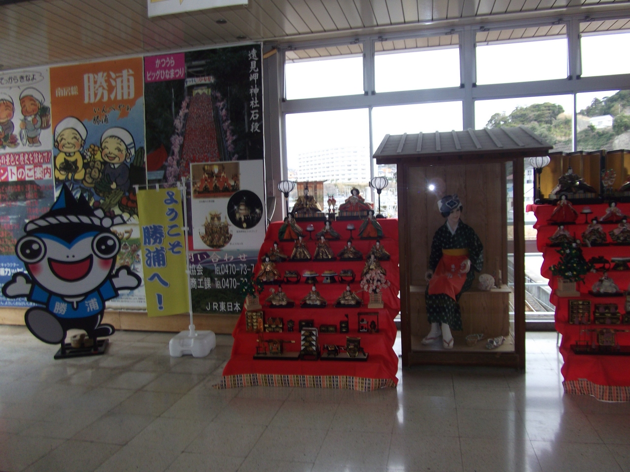駅ナカには、売店が一つだけ駅前には漁協のみやげものが1軒です。東京から特急で約3500円1時間半ほどでいけます。海中公園に車で10分、でも2月下旬から3月上旬にかけてのひな人形まつりが今の売りかもしれません。タンタンメンも勝浦グルメ