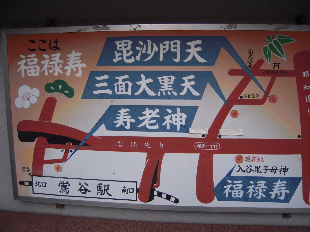 鬼子母神は福禄寿だそうだ。近くに大黒天と毘沙門天があるそうだ。看板が建っていた。