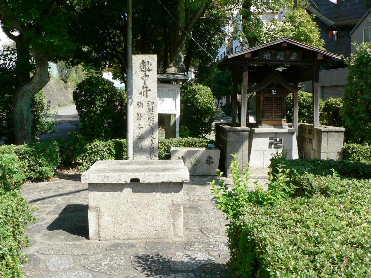 を刻んだ記念碑が、井戸の脇に建っている。中央区森の宮中央二丁目12 越中公園そば、地下鉄中央線・JR大阪環状線「森の宮」下車南西約500mにある。