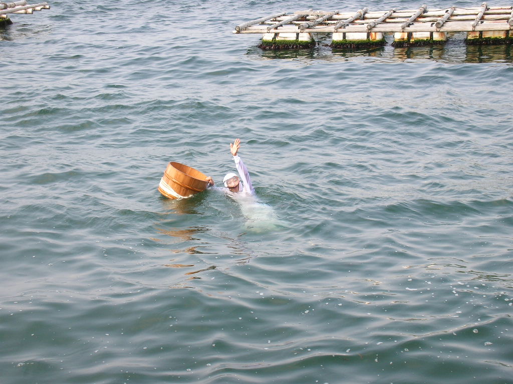 かなり本格的で海女さん独特の白い服を着て海にもぐってくれます。