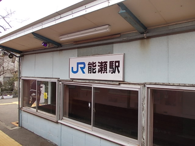 この駅を通り過ぎた際、ホーム上に見た待合所の駅表示看板が、新しくてしかも大きいことが少し気になりました。風情としては既に駅舎が現存してしていない南羽咋駅を髣髴とさせるものがありますが、こちらの駅はまだ駅舎があります。この待合所の大きめな駅表示は、そのうち能瀬駅の駅舎が解体されることを暗示しているのでは、と少し心配になりました。