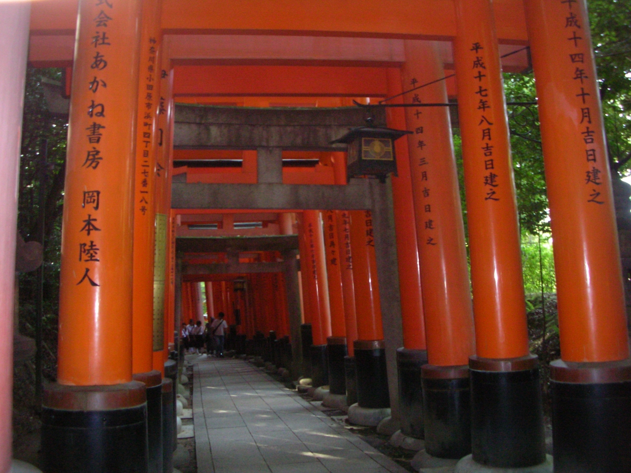 JR伏見駅を降りて、一番鳥居をくぐり、桜門へ行くと、お稲荷様がまるで狛犬のように迎えてくれる。本殿からさらに進むと、いよいよ有名な千本鳥居が見えてくる。すごく不思議な光景である。奥社奉拝所までは約5分から10分程度。鳥居の周りは林で薄暗いけれど、真っ赤な鳥居は際立って明るく鮮やかである。伏見稲荷は千本稲荷ばかり印象に残り、他はあまり見てこなかった。もい一度行って他のものも確認したい。