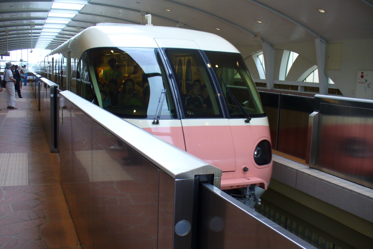 東京ディズニーランドの玄関口で、ディズニーランドを一周するモノレールの乗り場なのです。カップルばかりですが、たまに鉄道ファンも乗っています。スイカ利用可能。この駅から乗って、一周してまた戻ってくることができます。普通はできないのですが、ここは例外なのでしょう。