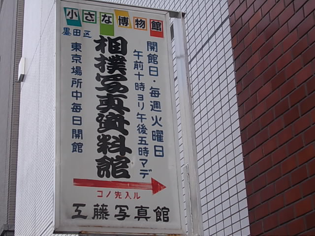 相撲好きな人間にとっては、両国界隈は聖地ともいえるのですが、ここの写真館、火曜日が休み、と思っていたら、火曜日のみの開館、ということなので注意が必要です。写真屋さんとしては営業していますので、それ以外にも色々とお話は聞けるのですが…。