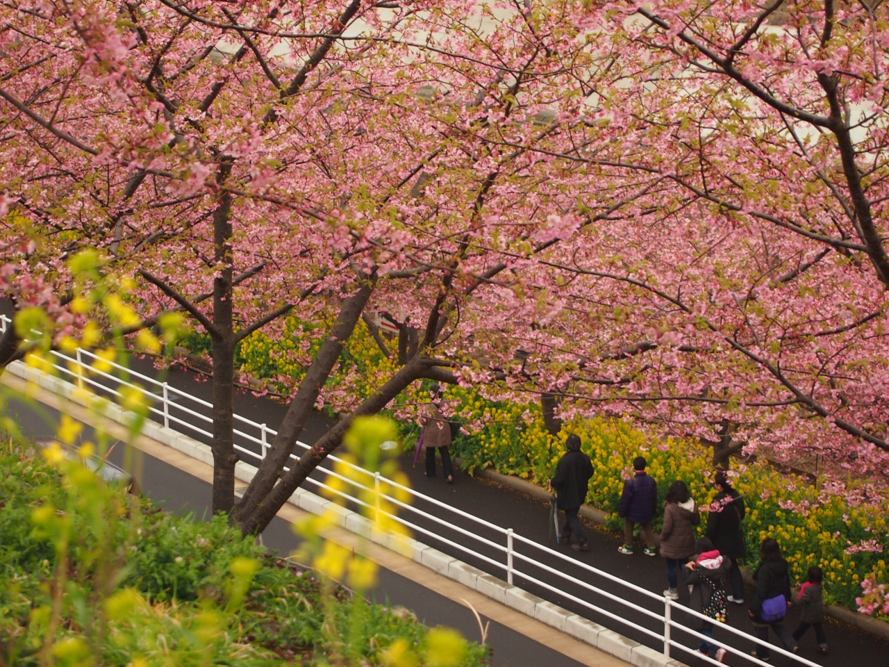 - 1kmにおよぶ河津桜と菜の花ロードは必見