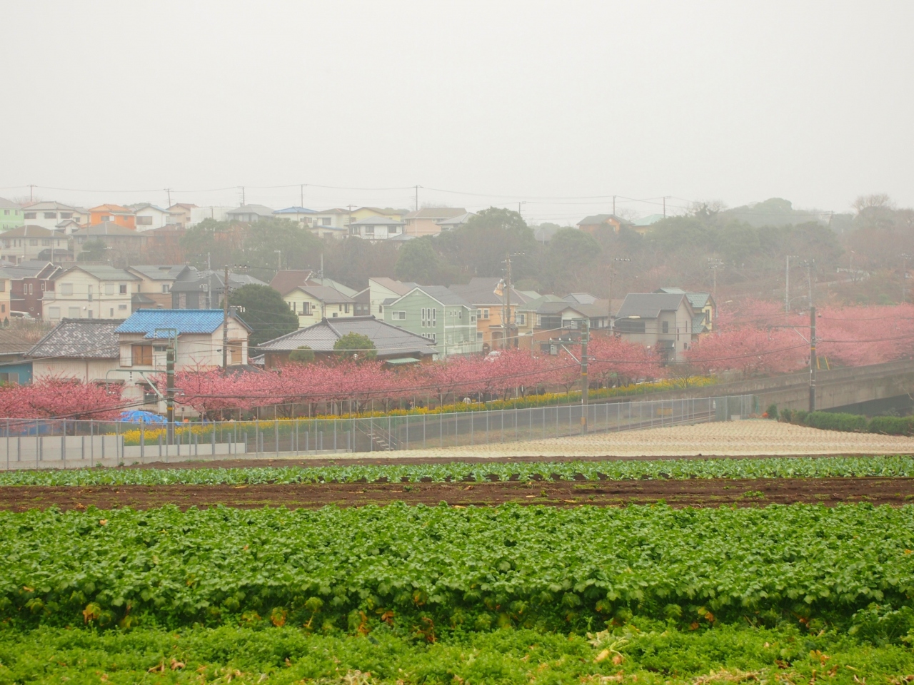 現在、一番綺麗に咲いているのは三浦海岸駅前の河津桜です。