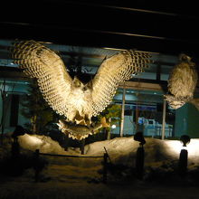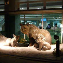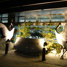 タンチョウ、ヒグマ、エゾシカが空港ビルの外に