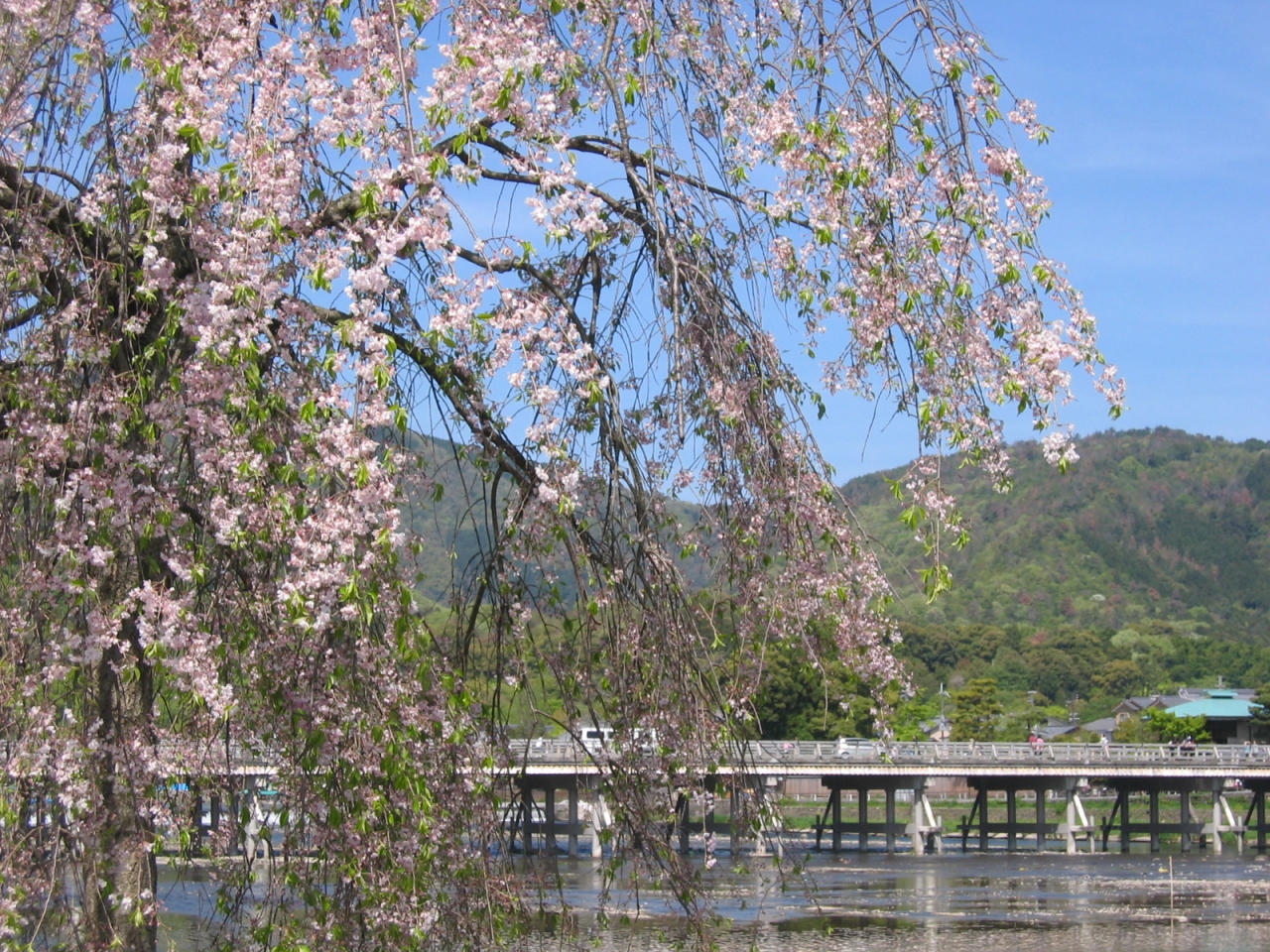 桜と渡月橋・・・