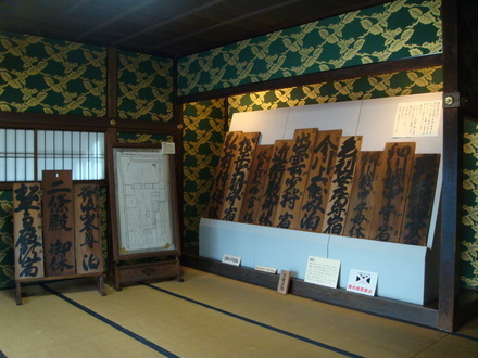 立派な構えの門をくぐると、玄関広間には関札が並べられています。