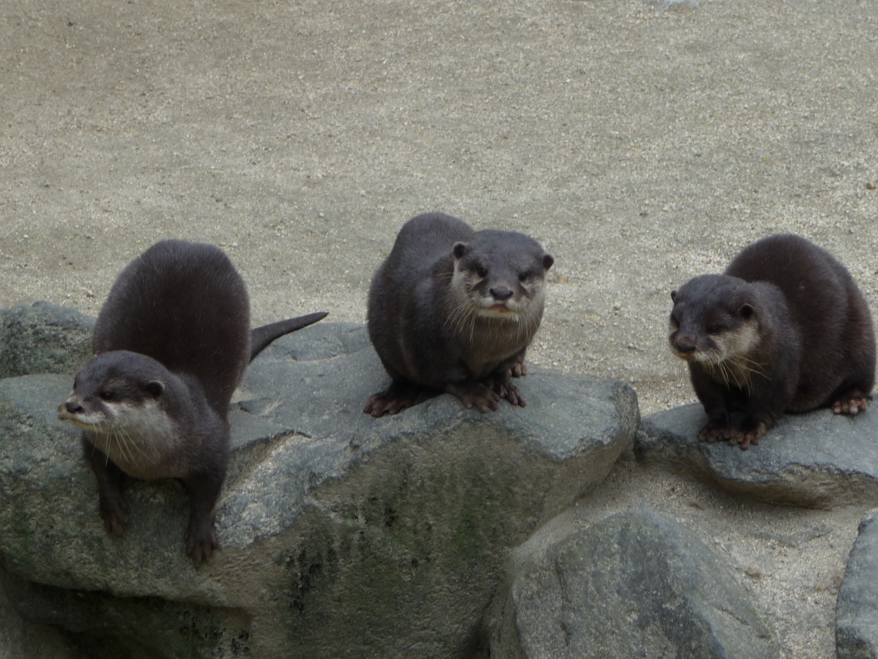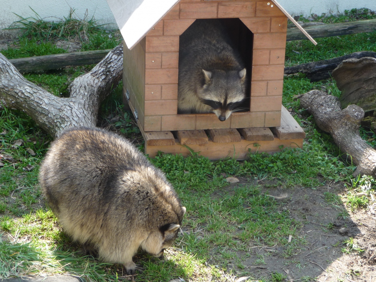 その近くでは、アライグマやコツメカワウソも愛嬌をふりまいています。