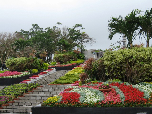 海洋博公園は、海洋博が行われた海に面した広い公園でした。入口からエスカレーターや階段で斜面を下っていくと、海に面した部分には美ら海水族館、海岸遊歩道、エメラルドビーチなど一日中楽しめるようになっていました。